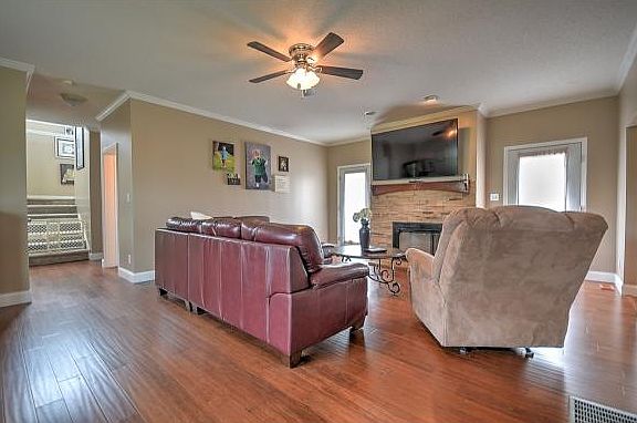 This home boasts 4 bedrooms, 4 baths, laundry room, a finished loft area that has a living room, sitting area, bedroom, and bath. BEAUTIFULLY REMODELED KITCHEN! Walking through the front door you are greeted by a warm cozy living room with NEWLY INSTALLED LAMINATE HARD WOOD FLOORING through out. Nice gas fireplace for those cold winter nights. The kitchen also has tile flooring, center island, built-in oven and microwave, stainless steel appliances and oak cabinets. On the back wall there is built-in shelving. The master bedroom is big in size with its own sitting area, walk-in closet and TWO bathrooms. The first bath has a very nice soaking tub. The second has a stand up shower, toilet and vanity. The closet has ample space for all of your clothes. There are 2 other bedrooms and 1 bath on the main level. Upstairs, you have a nice loft style living area. This home has a drive in 2 car garage and ample parking spaces. Enjoy the concrete patio area out back for all of those cookouts and guests. This is a wonderful neighborhood that is close to Laughlin Hospital, schools and shopping.