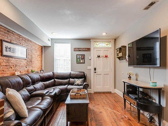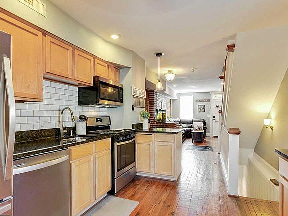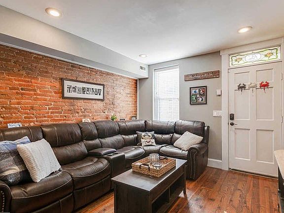 A true Federal Hill charmer. This 2 bedroom, 1.5 bath end-of-group townhome offers a great mix of history and modern upgrades. Fully open main level floor plan features original hardwood floors, exposed brick, recessed lighting, stainless steel appliances, granite countertops and a designer-tiled backsplash. Deck off the kitchen makes grill-to-table action super simple! Upstairs features bedroom in the front and back of the home with a shared full bath in between. Finished basement offers laundry room and a flex room that could be used as a home office or guest room, complete with track lighting, painted exposed joists and a new sliding barn door. Bonus interior hallway access to rooftop deck great for nighttime entertaining and stellar city skyline views. Located on a quiet street just a block or so away from Riverside Park.