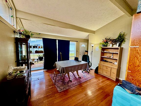 Nice one level home on large flat lot and fenced backyard. 3 bedrooms, 1 bathroom. Large living /family room with high ceilings and wood fireplace. Roof is about 12 years old. HVAC and Water heater are about 5 years old.