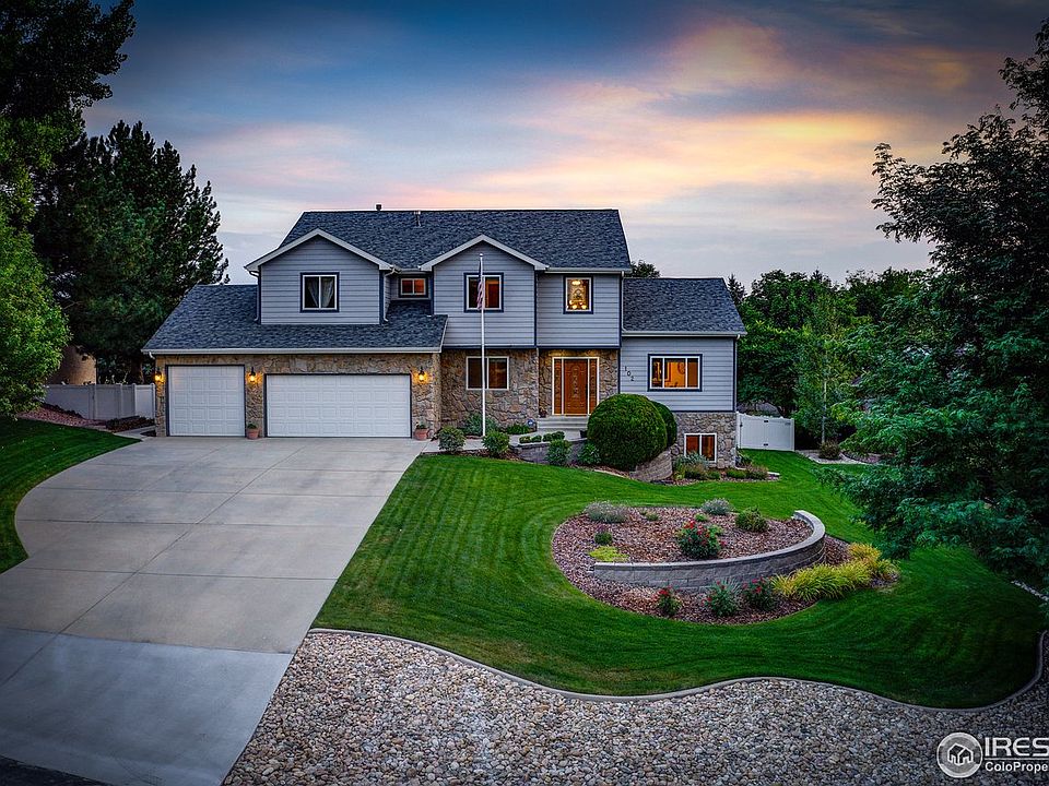 Warm and Inviting 2 Story located in The Mad Russian Golf and Country Club. Come live in a golf course community without all the fees (NO HOA) and the feel of small town living but the convenience of an easy commute to 1-25 or Hwy 34. Well maintained custom home, offering nearly 4500 finished square feet situated on over 1/3 of an acre with 4 bedrooms, 3.5 baths, and 3 car attached garage. Newer updates include tile and LVP flooring, granite counters, and freshly painted inside. Over the years the sellers have remodeled the kitchen, updated flooring and countertops, painted the exterior as well as newer roof and gutters in 2017. Peaceful and private, relax and enjoy the backyard boasting vinyl fencing, storage shed, pergola, and low voltage landscape lighting for the evening ambience.
