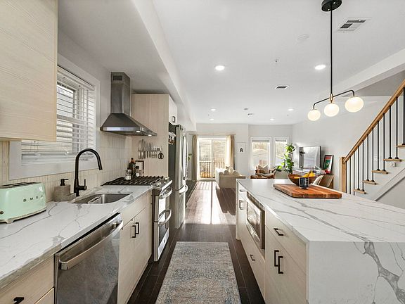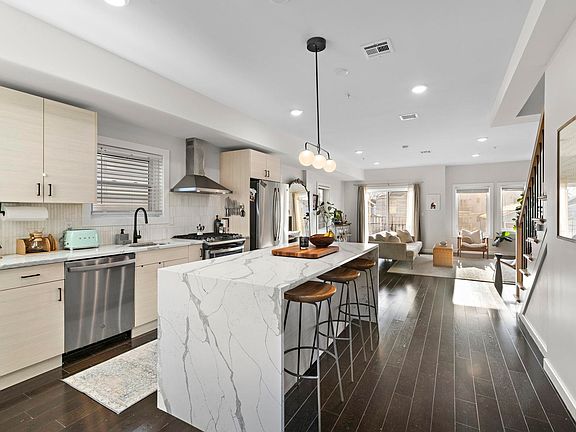 Welcome to 102 Ege Avenue, Unit 2, Jersey City—a perfect blend of modern elegance and urban convenience. Built in 2023, this stunning residence offers 2,065 square feet of thoughtfully designed living space with 3 bedrooms and 2.5 bathrooms, making it ideal for those who seek both comfort and style. Step through your private entrance and be greeted by soaring high ceilings and abundant natural light streaming through oversized, soundproof dual-pane windows. The entire first floor is dedicated to seamless living and entertaining. A chef’s dream, the gourmet kitchen boasts top-tier stainless steel appliances, a premium range, and sleek finishes that elevate every culinary experience. The open-concept layout flows effortlessly into the living and dining areas, creating an inviting atmosphere for gatherings or quiet evenings at home. A convenient half bath completes this level. On the second floor, you’ll find three spacious bedrooms and two full bathrooms, including a luxurious primary suite with its own en-suite bath. From here, a second staircase leads you to the private rooftop terrace, where you can take in breathtaking city views. Additionally, enjoy the fresh air from your balcony, Juliet balcony, and private terrace, all perfect for entertaining or unwinding in solitude. The home is designed for year-round comfort, featuring central air conditioning and the convenience of an in-unit washer and dryer. With ongoing development enhancing the neighborhood’s appeal, this location offers both immediate convenience and strong long-term value. Just steps from the light rail, you'll enjoy easy access to Jersey City’s vibrant scene, Manhattan, and beyond. This exquisite home is a rare find, offering a sophisticated lifestyle in a thriving urban setting. Don’t miss the chance to make it yours!