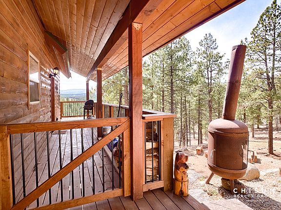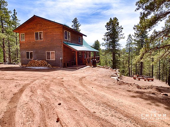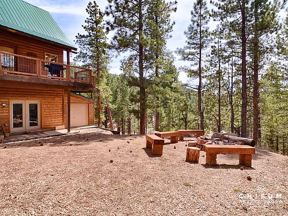 Come relax in the mountains of Angel Fire in this Chalet style home. 102 El Camino Real is located only a short distance from the Angel Fire town center where biking, hiking, skiing, dining and shops can be enjoyed year round. After playing all day, you can return to this cozy cabin that provides the privacy you desire. Located on a .80 acre lot that also overlooks a green belt, unobstructed mountain views and peace and quiet is what you can expect. This home faces southwest so natural light floods the home and provides some passive solar heating in the winter. The large wrap-around front deck is perfect for watching the wildlife meander through the yard and is perfect for enjoying Angel Fire's spectacular sunsets. Inside, you'll find a well finished home with a large great room boasting vaulted tongue and groove wood ceilings, a wood-burning fireplace surrounded by stone and a large window wall. The dining area features tile floor and the adjacent kitchen contains a breakfast bar and wood cabinets. The two guest bedrooms are on the main floor as well as a full bath and laundry closet. The upstairs features a loft with bunk beds and a master bedroom containing a walk-in closet, a jetted soaker tub and an ensuite bath with dual sinks. A bonus room is on the lower level, rounding out the sleeping capacity to 14 people! This home is being used as a rental property, rental history is available and it comes fully furnished, so please ask to see an inclusion list.