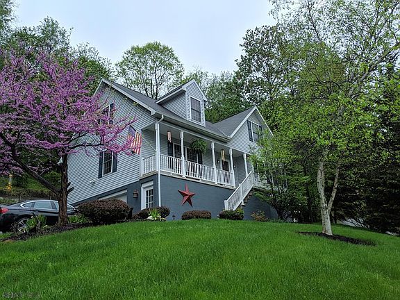Breathtaking views overlooking the valley. That's what you'll find at this beautifully updated home on a large double lot. The first floor is open concept with hardwood floors in the living room, a stone gas fireplace and lots of windows that let light fill the space. The dining room and kitchen are updated with granite countertops, new cabinets, stainless appliances and tile accents. A large screened deck is just off the dining area to expand the living space outside where you can sit and enjoy the chimenea fireplace on cool evenings. The Master bedroom is spacious and features an updated Master bath with double sink and tiled shower. Two more bedrooms + a full bath upstairs. Downstairs you find a family room, wood burning stove and half bath + a 2 car garage. Work shop & shed too!