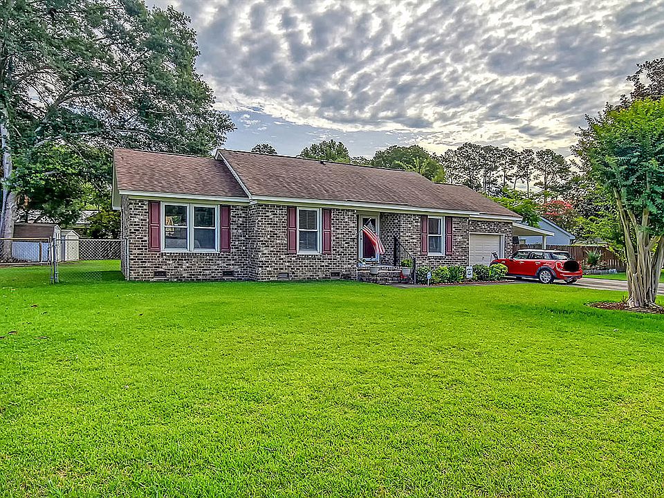 This charming brick ranch home is tucked away on a quiet cul de sac in an established neighborhood. It's also located in the desirable Dorchester II School District. The attached garage with built-in cabinets and work bench, additional carport with RV electric/water hookups, and large driveway give you plenty of space for parking and storage. You even have enough space to park your boat and/or RV! The home also features a generator hookup. As you enter, you're greeted by a remodeled foyer with new tile flooring, new laminate flooring in the family room and hallway, fresh interior paint, some crown molding, and a spacious floor plan, with a great flow for entertaining and everyday living. Enjoy cool evenings in front of the cozy brick fireplace in the family room.The fully renovated eat-in kitchen boasts new laminate flooring, new stainless steel appliances (including a new range with air fryer), quartz countertops, updated cabinetry (including upgraded large drawers, spice rack, and lazy susan), a stylish subway tile backsplash, and island with a breakfast bar, and ample cabinet and counter space. Refrigerator to convey, with an acceptable offer and as part of the sales contract. The spacious master bedroom features crown molding, a walk-in closet, and a recently remodeled en suite with a new vanity and large tile shower. The guest bathroom was also recently remodeled. The cozy bonus room over the garage could be used as a 4th bedroom or it would also make an excellent entertainment room or home office. Enjoy your morning coffee from the large sunroom with upgraded windows. The large patio and oversized fenced-in backyard will be perfect for grilling out, entertaining, or watching the kids and/or pets play. You'll also find 2 storage shed, which will be great for storing your tools and lawn equipment. Conveniently located near shopping, dining, and Historic Downtown Summerville. Come see your new home, today!