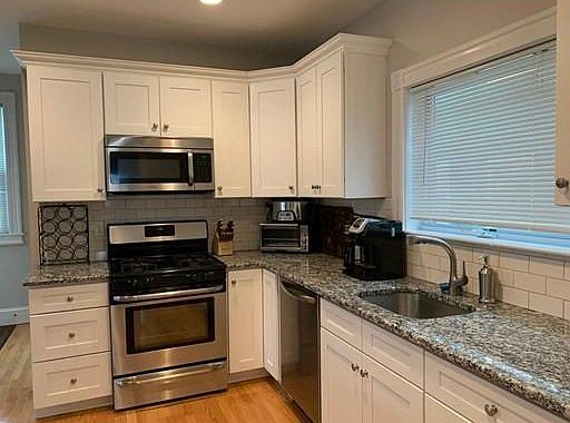 Condo Quality! One Bed, Granite & Stainless Steel, Central A/C! ** A bright and pristine, renovated 1 bedroom available for April 1st or possibly sooner. The apartment has beautiful new finishes throughout. Gleaming hardwood floors, new kitchen cabinets with pantry storage, stainless appliances, granite counter tops, Breakfast Bar/Peninsula. Central A/C, yard/grilling space. Off street parking. Dedicated Laundry in the Immaculate basement along w/your own Navien on Demand Water Heater. Great bedroom double closet w/built-in shelving. Located near the Watertown Mall. Convenient to Mass Pike, Soldiers Field Road, shopping, and Boston. Adjacent to the Watertown Greenway and Filippello Park and path to Mt Auburn Cemetary! No Pets. Move in Cost: first month, last month, one month broker fee. Rent Fee Includes: water, sewerage disposal, parking.