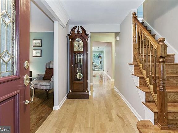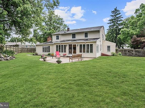 Expanded two story updated colonial in a great neighborhood! Pristine and move-in condition. As you pull up you will be taken by the beautiful landscaping with paver walls, light pillars and the exposed aggregate driveway that has been enlarged to fit seven cars. Enter from the large covered front porch through the double doors into the foyer with newer hardwood floors. The large living room with hardwood floors flow into the dining room with crown molding and chair rail. The expanded and beautifully updated kitchen includes a large island with storage and seating, stainless appliances, tumbled marble backsplash, Corian counters, cherry cabinets, newer hardwood floors and a subzero refrigerator. Large family room includes a gas fireplace with marble wood surround. The back addition gives a sunroom effect off the dining room, kitchen and family room. There is also a first floor office and an updated powder room. The second floor expanded master bedroom includes a large walk-in closet with custom shelving and a beautifully updated (2018) master bath with white cabinets, granite counter and wood tile floor and an additional closet. Three other bedrooms with sparkling hardwood floors and ceiling fans. The updated 2nd floor bath has granite counters, marble floor and shower and a skylight. You will love the large second floor laundry room complete with sink, cabinets and counter space perfect for folding. There is also an attic with pull down stairs. If you need even more space, there is an unfinished basement with additions that include an updated powder room and bilco doors. The lovely fenced back yard includes a large cement patio and gardens. Other features include freshly painted interior, a Nest smart thermostat, newer furnace and ac, a two car garage and a one year home warranty!