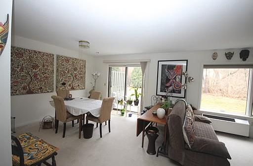 Come take a look at this SUNNY two bedroom, one and a half bath condominium. The first floor features; tiled entryway, half bath with laundry, kitchen with breakfast bar, light filled living and dining room with sliding glass door to the large deck off the back. The finished family room with built-in book shelves, in the lower level, is currently being used as a craft room. On the second floor; writers loft/home office with a bonus storage room, master bedroom has a bank of windows, a gracious walk-in closet and private vanity sink. The full bath has a new walk-in shower and adjoins the center hall and master. The second bedroom has a double closet for extra storage, if needed. Fairway Village Condominiums is short drive to Florence center, Northampton Country Club, Look Park and Musante Beach.