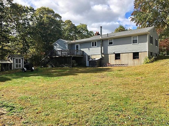 Great 2 bedroom plus a finished room in the walk out basement. Lots of space & an open living room to kitchen layout, 1 car garage attached, hardwood floors, double oven, matching appliances, center island, cozy fire place in the living room, updated bath, finished breezeway with wood stove (coal stove to stay), wood deck for enjoying the large private back yard and grilling, walk out basement with high ceilings & full size windows. In the basement there is a beautifully finished room with recessed lights & plumbing for a bathroom, toilet is already hooked up. Chimney for another wood stove in basement, Oct. 2019 new driveway, Oct 2019 new windows, 2018 new gutters, 2017 new boiler and oil tank, 2016 new roof, 2010 new 200amp electrical service, makes an excellent single level living space, convenient exit 6 location convenient to shopping, highway, downtown, waterfront & beaches. This is a well taken care of home don't miss it.
