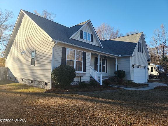 Start the New Year off right with this 3-bedroom 2.5 bath home located in Reedy Creek Subdivision. No HOA, 1.16-acre Cul-de-sac lot. Walk into the foyer and you are sure to notice the open feel and vaulted ceilings. Kitchen features stainless steel appliances w/ gas range, granite countertops, under-mounted sink, and island. Countertop and cabinet space are sure to impress. Open floor plan flows into the living room which features a floor-to-ceiling stone gas fireplace. A screened porch expands the living area w/ a 6' privacy fence, and woods beyond fence. Two wired storage buildings with lots of yard space. The split layout bedroom design keeps the main suite private with its own retreat bath featuring a split vanity area, walk-in shower, and corner jetted tub. Deep walk-in closet with racks all around. Large closets continue with the other two bedrooms with built-in racks. The two bedrooms have a full bath located between them. Through the laundry room leads into a large garage with built-ins. The finished bonus room above the garage has a half bath, and numerous crawl doors around the room. HVAC Gas Pack / 4 ton 14 seer condenser and coil installed March of '22. Septic serviced '21 / new lines installed. Talk about location: 10 minutes from Coastal Carolina Regional Airport, 15 minutes from historic downtown New Bern, approx. 30 minutes from MCAS Cherry Point, and less than a hour from Atlantic Beach!