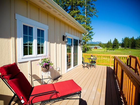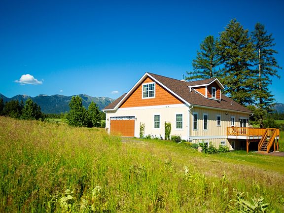 Charming modern country 3-bedroom, 2 1/2 bath home conveniently located in a paved new subdivision minutes from Kalispell, Bigfork and Flathead Lake. Master bedroom and master bath (with soaker tub) on main level. Open floor plan, 9-foot ceilings and large windows to enjoy the stunning expansive views of the surrounding mountains. Modern finishes include hardwood floors, stainless steel appliances, electric oven/stove (piped also for gas), solid surface countertops, farmhouse sink and a beautiful real-stone fireplace (gas). Enjoy the comfort and efficiency of radiant in-floor heating (main level & basement) from a natural-gas boiler. Other features include: stamped concrete porch, sidewalk and patio off the back deck; a heated 2-car garage with a large sink for outside clean-ups; and a beautiful, bright daylight basement; ready to be finished according to your tastes. The basement has roughed-in plumbing for an additional kitchen and full bath and is framed for a large living room and bedroom; great for those VRBO guest or visitors. Basement also has a chimney pipe already installed for a wood-stove, plenty of storage and a large natural cold room. Outdoors offers 2.4 acres of gently rolling land with mature evergreen trees and lovely perennials planted around the house. The beautiful deck off the dining room lends itself to those summer outdoor bbq?s while you take in the alpine glow and surrounding beauty of the Swan Mountains.