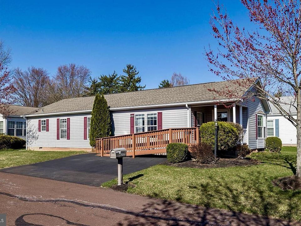 Welcome to Willow Run, a Charming 55+ Community in Limerick Township! Discover the comfort and convenience of one-story living at 102 Finch Lane, a desirable corner lot tucked away on a quiet cul-de-sac. This spacious 3-bedroom, 2-bath home features an open floor plan with neutral décor, perfect for effortless living. Step into the generous living room, which flows seamlessly into a separate dining area—ideal for entertaining. The bright, naturally lit kitchen is enhanced by skylights and offers plenty of cabinet storage, gas cooking, a dishwasher, and a refrigerator. A convenient pass-through to the living room adds to the open feel. Just off the kitchen, the laundry room provides access to the rear yard, complete with a storage shed. The spacious primary bedroom boasts a walk-in closet and ceiling fan, while the en-suite bathroom includes a walk-in shower, large vanity, and linen closet. Two additional well-sized bedrooms each have ample closet space, and the hall bath—illuminated by a skylight—features a tub/shower combo and vanity storage. Beyond the home, Willow Run offers wonderful community amenities, including a clubhouse with activities (available for private events) and a lovely pool area, making it a fantastic place to both relax and socialize. Don’t miss this opportunity—schedule your showing today!