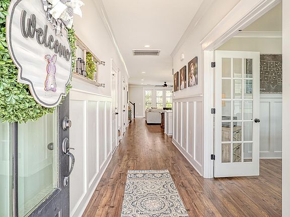 Luxury home located on a peaceful cul-de-sac w/ stunning wood floors, an open concept living space & wooded backyard. The first floor features engineered hardwood floors that flow throughout while board & batten wall accents add character. Natural light floods the living spaces through custom 8 ft glass doors. In the dream kitchen, you'll find quartz countertops, tile backsplash, farm sink, SS appliances including gas stove w/ vented hood & cabinet microwave. The master suite is tucked away in the back of the house & boasts a luxurious bath & large walk-in closet. Upstairs are 3 add'l bedrooms, 2 add'l bathrooms & loft along w/ an amazing playroom guaranteed to inspire creativity! Step outside onto your private oasis, which backs up to community space. Path to YMCA & trails nearby!