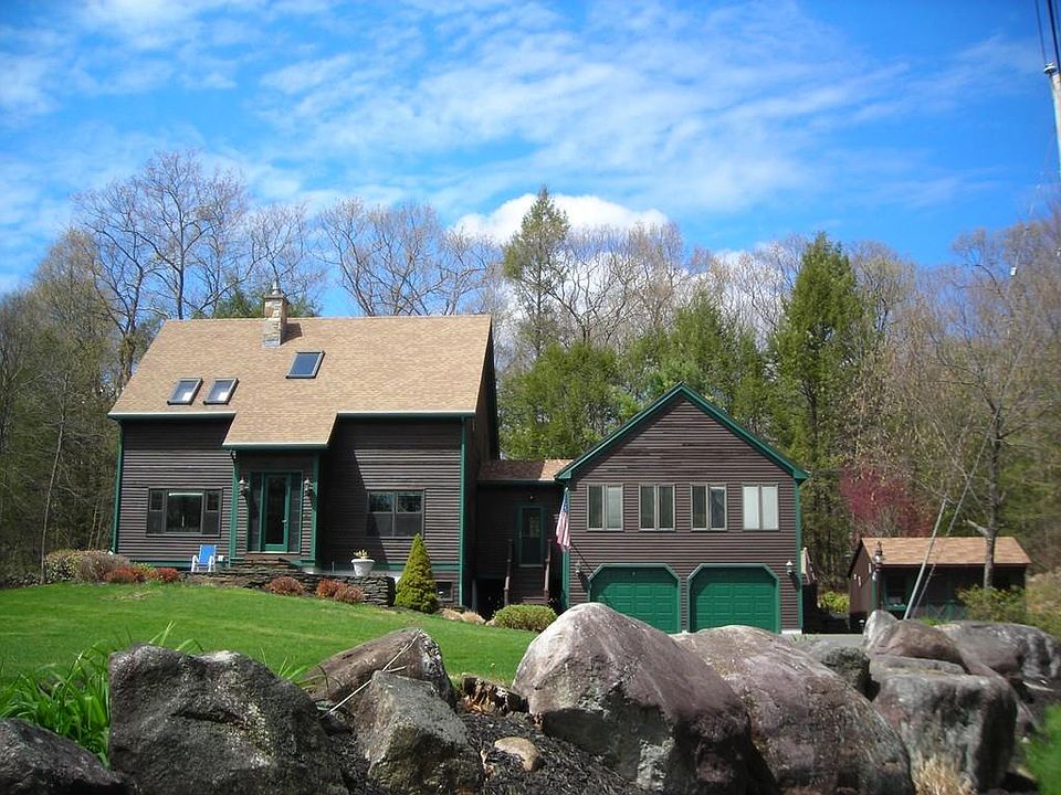 Very special offering with this multi-featured contemporary Cape. Originally built in 85 .. recent renovations / updates have created a "one-of-a-kind" home. Vaulted ceilings / granite / mix of stone & wood / new heating, windows, roof & more. A 24' X 24' multi-windowed family room, kitchen re-do & full length, rear deck are highlights. Two-car garage / storage shed, 6 acres, finished basement, landscaped yard, stream and the privacy of a small 3-home cul-de-sac make this a great opportunity.