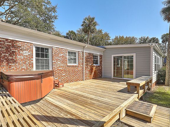 Situated on a spacious, peaceful lot, this lovely brick home is located in the well-established neighborhood of Forest Trail on the Isle of Palms. The property welcomes you home with majestic live oak trees, soaring palm trees and flowering shrubs. This beach bungalow offers a spacious open living room, dining room and kitchen area for plenty of space to host family and friends. The 4 Bedrooms and the rare find of 3 Full Baths sets the home apart from others on the Island. Two of the baths are private (en-suite) and all three have been thoughtfully updated in the last three years with new tile, fixtures, vanities and lighting. Gorgeous Australian Cypress floors run throughout the main living area. Enjoy the extraordinary space for relaxation and entertaining on the light filledtiled sun room. Exceptional outdoor living can be enjoyed on the screened porch. In addition, the deck with a built-in bench and hot tub span the back of the house and overlook a large fenced-in yard. The yard wraps around three sides of the home to create fantastic opportunities to shape your own outdoor oasis. Create a garden, place a fire pit with seating, there is space for it all and more! This well-maintained home will be worthy of consideration. An extra feature to the home are the additional closets throughout for coats, linens and more, plus built-in shelving in the baths.