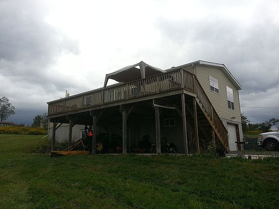This 3 bedroom 2 bath with finished basement and large deck sit on 86 ac, There is 2 stocked ponds abundance of wildlife in clean and green.