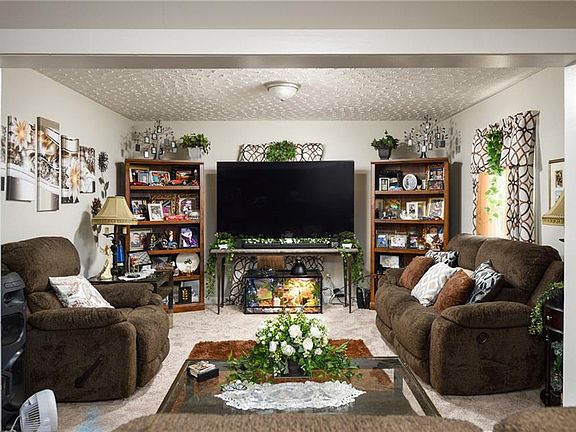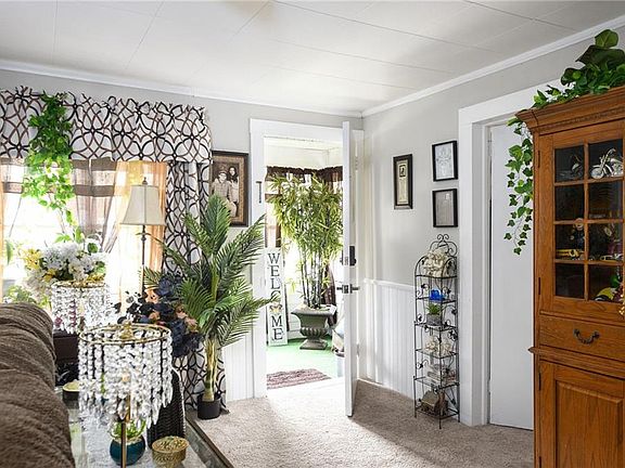 This home features two spacious bedrooms, an eat-in kitchen with a bar, and another space that could be used as a dining room, play area or office, space. New carpet, paint and light fixtures throughout the home. There is a fairly open floor plan . Enjoy solid-wood cabinetry in the kitchen. Spacious utility/laundry room providing great storage options. Front of home offers a covered porch and a sunroom! Storage building to remain. Perfect for an owner/occupant or as an investment property! Easy access to Business 85, Hwy 64 and Hwy 52. Property sold AS-IS. See agent only remarks.