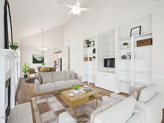 Welcome to 102 Garden Side Way in the highly sought-after Green at Scotts Mill community in Apex! This beautifully maintained one level 3-bedroom, 2-bathroom ranch home offers 1,428 sq ft of inviting living space filled with natural light and timeless charm. Step inside to find gorgeous site-finished hardwood floors throughout. The cozy living area features custom built-ins and gas fireplace. The bright, updated kitchen has brand new appliances and tons of cabinet space. Retreat to the primary suite, complete with large ensuite bathroom and huge walk-in closet. Enjoy seamless indoor-outdoor living with a large screened porch and newer rear patio—ideal for morning coffee or evening gatherings. Additional highlights include a 1-car garage, newer roof (2019), and direct access to the greenway at the end of the street. Don't miss your chance to live in one of Apex's best locations, close to shopping, dining, parks, and top-rated schools. Optional HOA fee of $425/yr includes pool, tennis courts, pickleball, picnic area and clubhouse. Schedule your showing today!