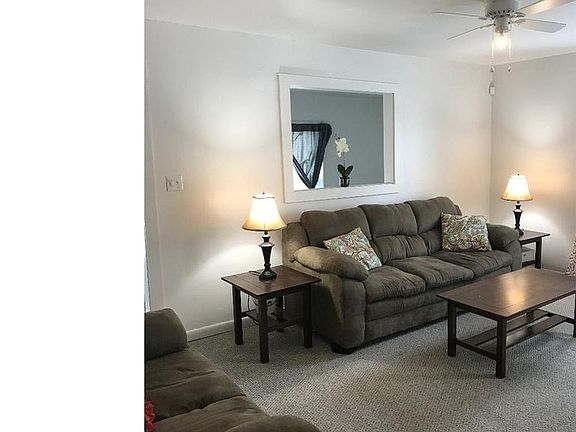 Five large bedrooms, 2 full bathrooms. Large outdoor seating area with a deck and grill. Remodeled kitchen, central AC and heat. Partly furnished with couches and TVs. Finished basement with laundry room. Includes additional amenities (ask for details). Parking for 10 in driveway.