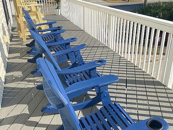 We have rocking chair front porches and the covered grill area that is the perfect spot for a BBQ, where you can watch the sunrise or relax! Enjoy the peekaboo ocean views and colorful beach homes with mature palm trees as you dive into vacation mode! And now an above ground pool with new white vinyl fencing for additional privacy and relaxation! This is a 2 bedroom plus loft - 2 bath home that is 1,318 square feet in size. The living room, kitchen, and dining room are all open concept. The home has a bright kitchen with high end appliances and laundry room exiting to back deck. Enjoy your morning breakfast on either balconies or on our extra long farmhouse table. The homes amenities are picnic/BBQ area, rocking chair front porches, private outdoor shower, nicely manicured yard and covered parking w basketball hoop.