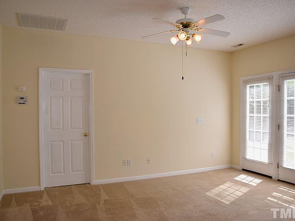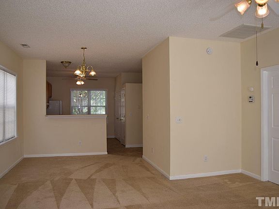 Available for 12/15 move in. Great Apex ranch style home with 9' ceilings and an open concept plan. The combined living and dining areas offer an angled gas log fireplace, dining bar and door leading to your rear patio, backyard and exterior storage closet. The fully equipped kitchen includes lots of cabinets and a pantry. This split bedroom plan offers private master suite at the rear of the home. 1 adult pet under 35 lbs permitted with $300 pet fee. No smoking permitted. Only minutes from Downtown Apex!