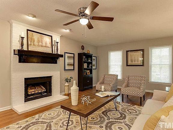 Prime Garner location! 10 min to downtown Raleigh. Mountain style feel in the city, situated on cul-de-sac lot. Updated interior, all new paint, fixtures and blinds throughout entire house. Large family room with laminate floors and rustic masonry fireplace which opens to private rear covered deck. Kitchen features lots of cabinetry, counter workspace, ceramic tile floors and big bay window in breakfast nook. Second floor has all new flooring. Detached 2 car garage with power, would make a great workshop. Showings start 4/24/20.