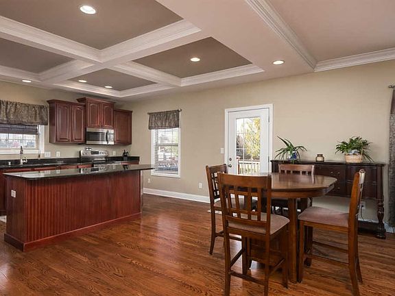 This home is a gem that you won't want to let slip by! Home has 3200+ sq ft with 4 bedrooms & many upgrades! Covered entry ushers you inside where you will immediately notice the gorgeous hardwood floors throughout the 1st floor. Home has a separate formal living and formal dining room, making it a wonderful place to entertain. Huge Great Room boasts stunning fireplace and custom, built-in bookshelves on each side. The kitchen will wow you with its amazing coffered ceilings, beautiful upscale cabinetry, and granite countertops. Kitchen also has stainless steel appliances and an additional dining area. Upstairs you will discover an wonderful flex space - want more play, living, or work room? You've got it here! Oversized owner's suite features a huge bedroom, private, ensuite bathroom with double-sink vanity, whirlpool tub, and a walk-in shower, in addition to a large walk-in closet. 3 additional bedrooms are very nicely-sized. Step out onto the back deck and check out the great yard!