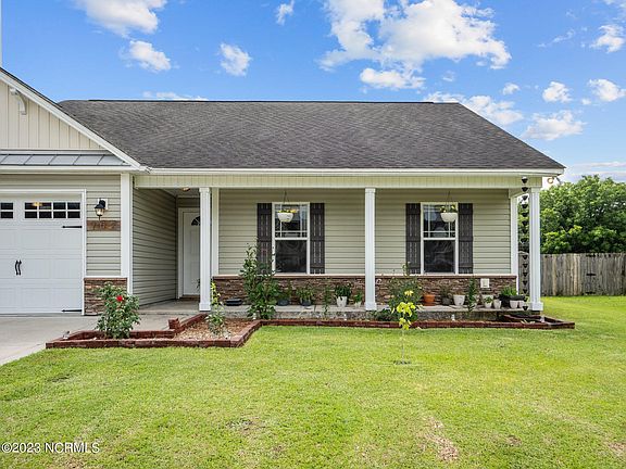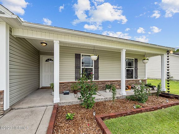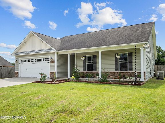 Situated in the Turkey Ridge subdivision, this 3-bedroom, 2-bathroom, 2-car garage home is an easy 15-20 minute commute to Camp Lejeune or the New River Air Station. Featuring an open floorplan between the living room, dining area, and kitchen, this one is perfect for entertaining friends and family. All appliances in the kitchen convey to include the refrigerator. The two guest bedrooms and the guest bathroom are down the hall while the primary owner's suite looks out over the expansive backyard. The owner's en suite has a dual-sink vanity and a shower/tub combo. Out back you will find a large fully fenced with a chicken coop that will remain if the buyers desire. Make your appointment to see this one today!