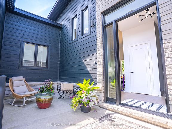 Welcome to a beautifully designed bungalow that blends refined elegance with the ultimate outdoor lifestyle. Perfectly situated for easy access to nature, adventure, and the charm between Collingwood and Thornbury. This home is more than a residence, it's a statement in sophisticated living. Inside, white oak hardwood floors flow throughout the light-filled main level, highlighted by soaring vaulted ceilings and expansive windows that bring the outdoors in. The chef-inspired kitchen is both stylish and functional, featuring a sleek breakfast bar with stone countertops, a premium gas range, and top-tier appliances. Unwind in the serene main-floor primary suite, where tranquil forest views create a true retreat. The spa-like ensuite includes double sinks, a glass shower, and a deep soaker tub, perfect for relaxing after a day on the trails or slopes. A cozy gas fireplace with a custom Venetian plaster surround anchors the living space, ideal for quiet evenings or casual entertaining. The main level also features a bright second bedroom, a powder room, a well-appointed laundry area, and a mudroom with direct access to the heated double garage finished with R12 insulated doors and premium epoxy flooring, ideal for a home gym or workshop. The fully finished basement offers plenty of space for guests or extended family, with a large west-facing great room, a spacious third bedroom, and a full bath with double sinks and a glass shower. Outside, enjoy sunset views from your private, west-facing yard complete with a gorgeous deck, lush landscaping, modern storage shed, and a full irrigation system. A custom stone-surround driveway completes the picture. Just steps from a sandy beach and the Georgian Trail, this location is unbeatable. Bike into town for coffee and shopping, or explore nearby golf courses, wineries, and ski hills. This exceptional home offers the perfect balance of luxury, comfort, and location, a rare find in todays market.