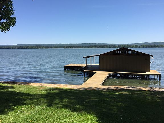 **Recently Updated Main Channel Lake Home** This beautiful waterfront lake home is situated on a gently sloping main channel lot adjacent to TVA property. The home features expansive water views, vaulted ceilings, hardwood flooring, wood burning fireplace, dock with 2 slip boathouse, open concept kitchen and a large master bedroom with attached master bath. Bedrooms, bathrooms, laundry and family area are all on the main living floor. The open loft may be used for additional sleeping space or a game room. Multiple upgrades include the new following items: metal roof, stacked stone seawall, HVAC, appliances, stacked laundry, granite countertops, French doors, hardwood flooring, bathroom tile, interior/exterior doors, two new decks and a screened in porch. Fresh interior and exterior paint, new remote ceiling fans and lighting are throughout the home.