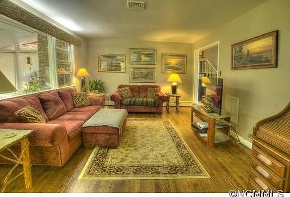 A gem of a home on a beautiful large lot. Lovely lawn, view across the valley, fenced in back yard & landscaped easy care gardens. Walking distance to downtown Brevard just outside the city limits. Home has been well maintained with many upgrades - see attachments. Large master, plenty of storage, cedar closet, sun porch has gas fireplace for year round use. Hardwood floors under carpet.