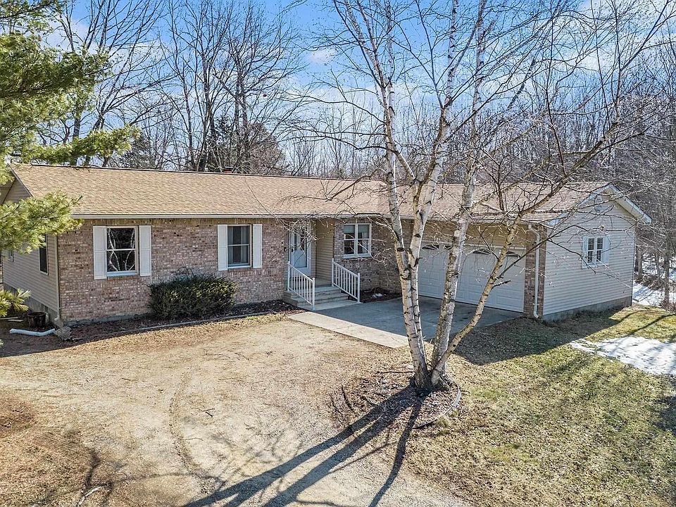 This beautiful wooded property is a nature lover's dream, offering a tranquil and secluded setting with a lovely pond that the deer like to play in. Great floor plan for this 1 story ranch with lots of natural light that provides a bright and welcoming atmosphere. This home boasts a cozy wood burning fireplace in the living room for relaxing on those chilly evenings. Efficient kitchen with snack bar that includes the appliances. Breakfast nook plus dining room off the living room. Primary bedroom with a full bath, Convenient 1st floor laundry. Full basement with workshop. Two decks for with wonderful views. Whole house generator stays. Pole barn plus a shed for additional storage. 4.65 Acres with a country setting that is just minutes away from shopping, great restaurants and I-69 for an easy commute.