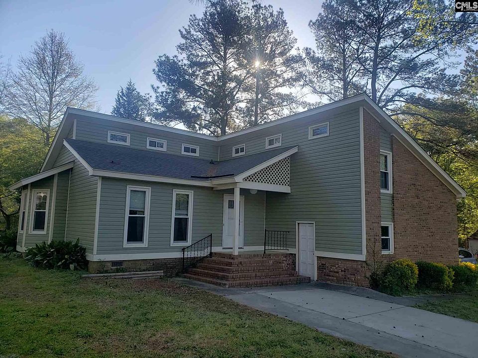 Come check out this adorable 3 bedroom 2 bathroom contemporary style home with a 1 car garage on a corner lot in a cul-de-sac. It features many updates including Newer roof, vinyl siding and vinyl windows. Owner's suite and 2nd bedroom on main level, 3rd bedroom on second level with separate office area. The side load garage is perfect for storage or a workshop. There is a shaded deck in back yard that is perfect for evening grilling. Inside you will find a formal dinning room located off the main entry way as well as a wood burning fireplace in the living room. The master bathroom has a newer tiled shower and vanity. The home is filled with unique character and design that make it stand out from the cookie cutter homes. It sits on a huge lot in a quiet well established neighborhood in the Lexington 1 school district.
