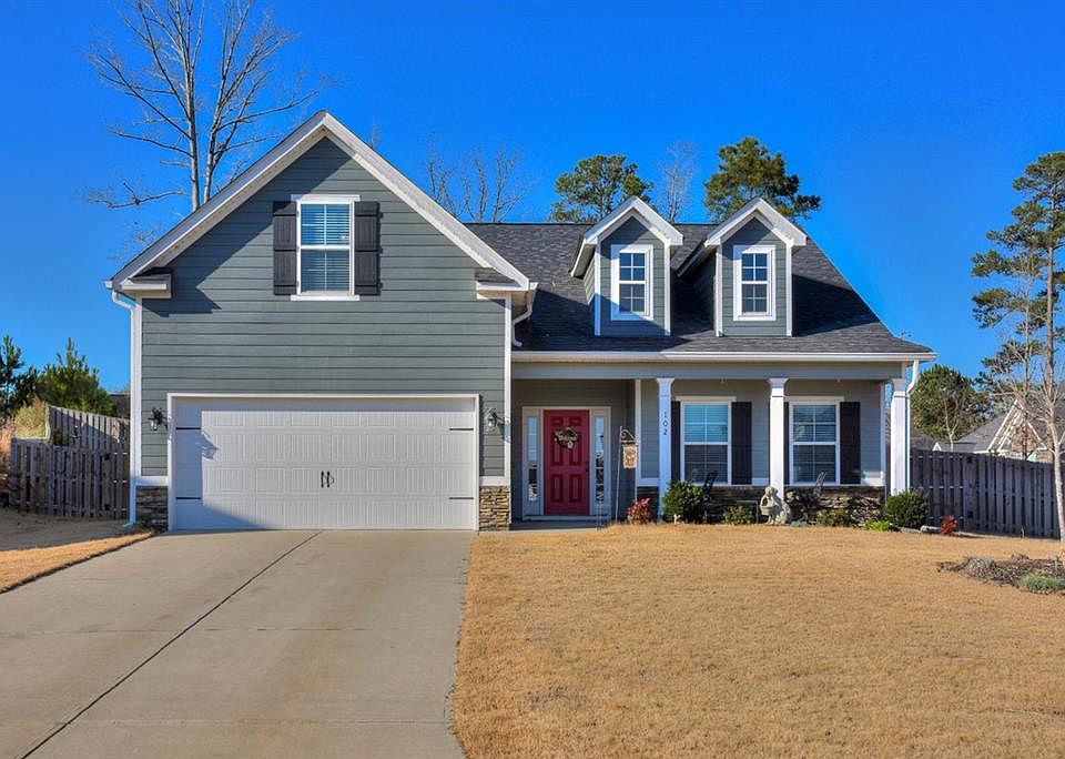 Immaculately presented! Well cared for & better than new! This gorgeous home w/ Owner's suite & spacious bedroom on the main level. Upstairs Guest Suite is perfect for college student/in-laws! Flex room on main level has a closet & can be used as 4th bedroom/office/playroom. This wonderful open floorplan features dining room, great room w/ cozy fireplace. Spacious eat-in kitchen w/ SS appliances, large island, granite countertops & tile backsplash. Owner's suite with large walk-in closet, private bath, double sinks, separate shower & soaking tub. Includes builder upgrades; coffered ceilings, wood floors throughout, plush carpet in all bedrooms, stone fireplace, sprinkler system in landscaped yard, fenced back yard for privacy & tranquility, rock garden area w/plenty of spring blooms, stone patio w/ firepit. Community includes swimming pool & is conveniently located near Patriot's Park & walking trails. Great Home! Great location! Great schools Must see! Schedule your tour today!