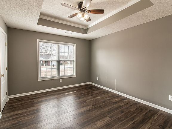 - MASTER BR DESC: Ceiling Fan, Crown Mold, Laminate Floor, Trey