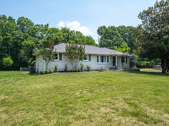 All white brick, midcentury home! Single level living on a large quiet cul-de-sac and over 3/4 acre that backs up to a private tree line! Over 1400 square feet of unfinished basement storage with basement HVAC already installed + single bay garage door. If basement storage or a workshop is what you need, this house has it! Newer double hung vinyl windows, and original hardwood flooring in main living areas, hallway, and bedrooms. Solid back deck off the kitchen with additional access from the primary bedroom. Don't miss the giant magnolia tree in the front yard. Perfect for the buyer looking for a solid home that could live comfortably as it currently sits, or you could add tons of value with some upgrades!