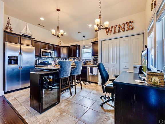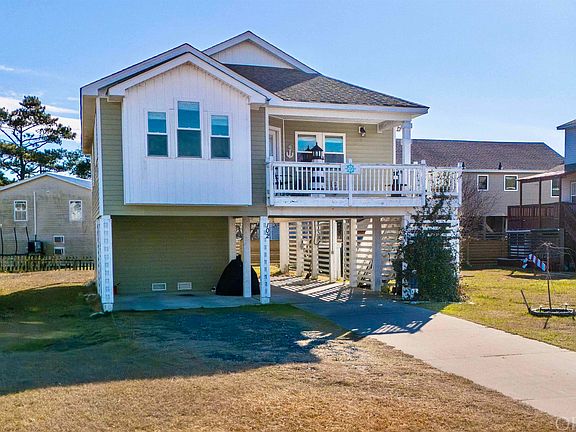Quality built by Gregory Butcher & Carolina Custom Homes, this home would make a great primary home or an excellent rental property. With attention to details throughout the home, you can enjoy beautiful water views from every room. Find tile flooring in the Kitchen/Dining area & both bathrooms. Hardwood flooring throughout in the Great Room, Hall, & Bedrooms. Stained Glass Entry Doors., Just a few of the extra special features you will find are Self Closing Kitchen Cabinets, Solid Granite Counter tops & Kitchen Island. Primary Bedroom has two closets and an electric Lava Heat Fireplace while the bathroom has a double vanity. Also, find extra attic storage space with the convenient pull down stairs. The Ground Level has a Dry Entry and as well as a nice Storage Area. Enjoy the Outside Shower and plenty of room to park 3 cars under the covered carport area and more in the driveway while being located on a quiet cul-de-sac.. Enjoy the Coastal lifestyle of Colington Harbour. Colington is a soundside boating community located around 10 minutes from the oceanfront. and ofFers a 24 hour security guard at the gate, a private beach, playground, picnic area, boat ramp and some great fishing spots. For an extra small fee, you can use the community swimming pool and tennis courts. HOA fees are only $347 per year.