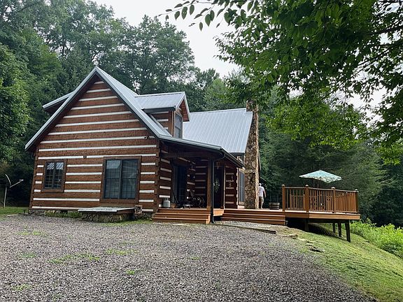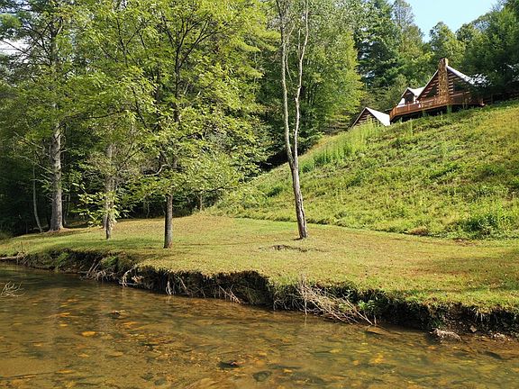 CUSTOM BUILT LOG CABIN WITH 3 BEDROOMS, 2.5 BATHS WITH SOLID IMPORTED CANADIAN HEMLOCK LOGS SETTING ON 11+ ACRES ON BURKS CREEK WITH OVER 1320 FEET OF CREEK FRONTAGE. LARGE MASTER BEDROOM, LARGE DINING ROOM, NICE KITCHEN WITH ITALIAN TILE FLOORING, LAUNDRY ROOM, HALF BATH, NICE MUDROOM OFF THE BACK AND GREAT ROOM WITH CATHEDRAL CEILING, STONE FIREPLACE & HARDWOOD FLOORS. UPSTAIRS YOU HAVE A BALCONY OVERLOOKING THE GREAT ROOM WITH 2 BEDROOMS AND BATH. OUTSIDE YOU HAVE A 2 CAR DETACHED LOG GARAGE WITH STORAGE ROOM ABOVE. VERY PRIVATE!!!