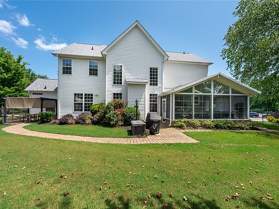 Welcome to this majestic home nestled on the most beautiful spot in a CUL DE SAC on .39 of an acre. You will love the the beauty and serenity of this fabulous property, complete with WROUGHT IRON FENCING adding sophistication and security. The front porch of this stunning traditional home is truly captivating, and its charm has been further enhanced by recently painted columns. The front yard now shines with the addition of new uplighting, illuminating the landscape and creating a warm and welcoming ambiance.