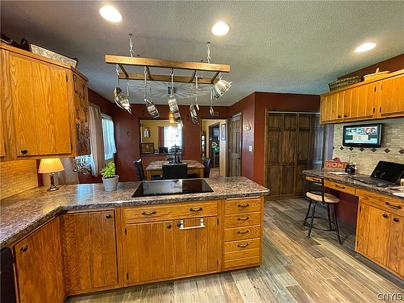 Warm and welcoming covered front porch with plenty of seating area. Located in the Village of Boonville on a dead end street you will find 2176 square foot Colonial house. First floor bedroom, updated kitchen with Induction cooktop, Quartz sink with soft touch faucet, plenty of oak cabinets including a pantry! Natural birchwood floors, two updated full baths, hallway cedar closet. The basement is home to the laundry room, rec room with dry bar and fireplace. Sit back and enjoy the deck/pergola roof. (Electric pet fence on property.)
