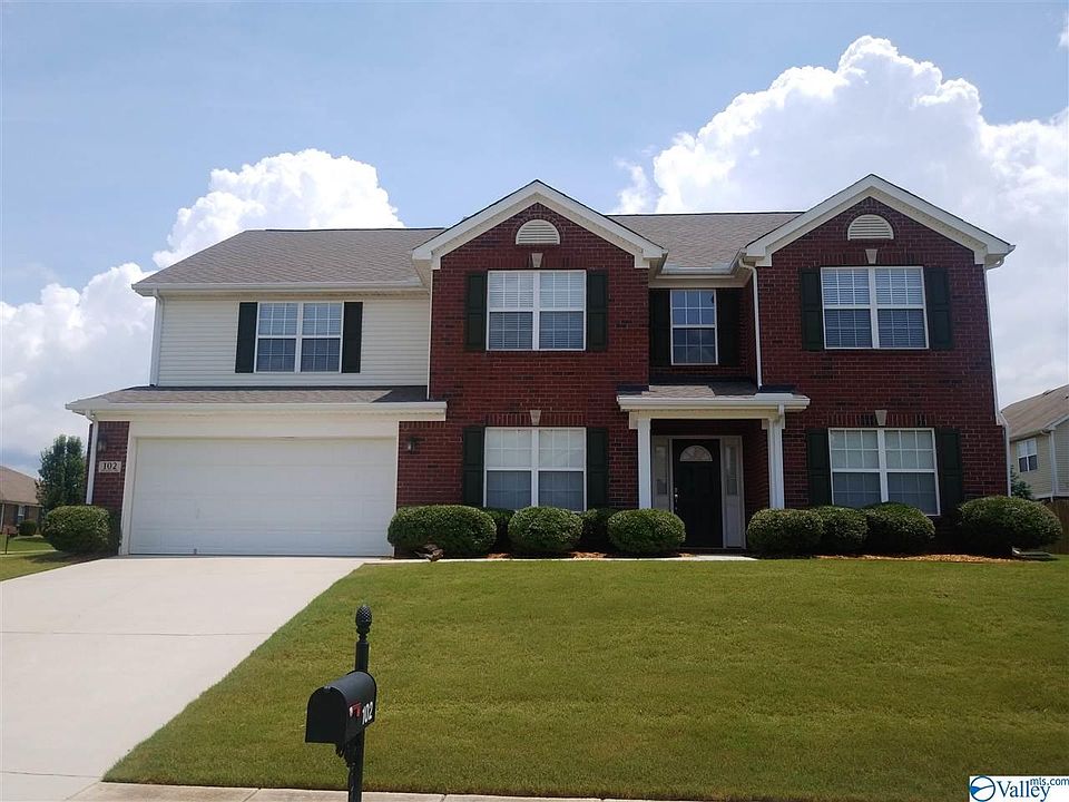 Fantastic well kept home in Oxoford/Madison City Schools! This home features a main level master w/ open concept great room featuring WB FP. Step inside the 2 story foyer with formal dining to the left and study to the right w/ french doors. Functional kitchen with recessed lighting & tons of counter-top and cabinet space, plus large pantry right off the kitchen. Four additional over-sized bdrms on 2nd level, each w/ a walk-in closet. Large bonus area that could easily fit a pool table, plus 2 full baths. Smooth ceilings, crown molding, and recessed lighting throughout this lovely home. Corner lot with 2 car garage & in-ground Storm Shelter and Brand New Roof!