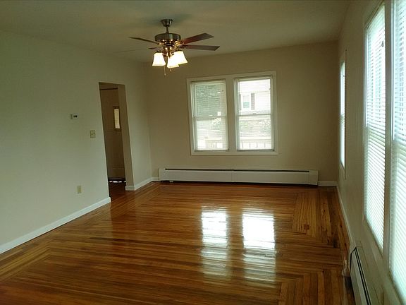 Bright and sunny, open Living Room and Dining Room, large 5 room apartment for rent on the first floor of a 2 family house . Remodeled- New Kitchen with Tile Floor and tiled backsplash. Refrigerator, Stove and Microwave Hood Remodeled Bathroom with Tile Flooring 2 Bedrooms- 1 with walk in closet Hardwood flooring throughout Washer and drier hook-ups (basement) Nice backyard Heating is gas (tenant pays utilities) Convenient downtown location and minutes to highway access. **Sources of income must be verified ** All potential tenants must complete a rental application. **Full background check, criminal record and credit check for all possible tenants. **NO PETS **Sorry no smoking **FIRST-LAST & and SECURITY