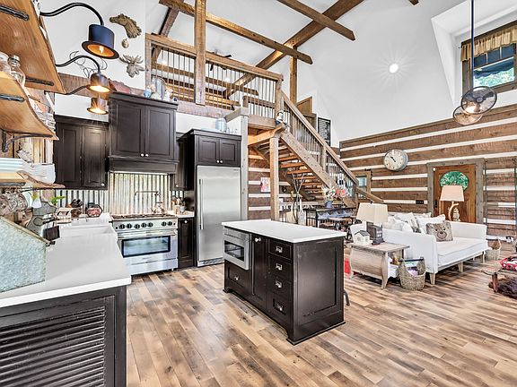 Escape to your own slice of Tennessee paradise with this stunning custom built log home! Nestled on 4.820acres of peaceful wooded land, this 4bedroom 2.5 bath, home blends rustic charm with modern comfort. Step inside to find soaring vaulted ceilings, exposed beams, and a cozy propane burning potbelly stove, that creates a warm mountain-cabin feel. This property features: high-end appliances, solid wood interior doors, real hardwood floors, metal roof, real brick flooring, large pantry Pella windows & slider doors with internal blinds, Pella solid wood mahogany entrance door, Douglas fir 6x12 hand hewn logs, custom light fixtures . 1900’s original antique refurbished train pot belly stove, built to last for generations. Oversized, custom cedar faced Garage Doors with LIFTMASTER openers, Generac back up generator, custom cloth awnings! The open floor plan flows seamlessly into a spacious kitchen featuring custom cabinetry, stainless appliances, and plenty of room for entertaining.