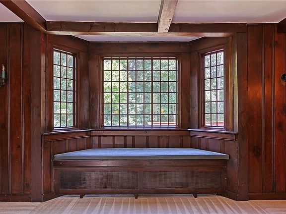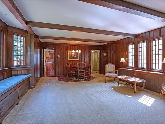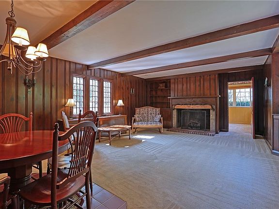This charming one-and-a half story house is located in the Gravenhurst Plan in the Blackhawk School District just minutes from Route 51, I-376, shops, and restaurants. It features a main floor primary bedroom with wood-burning fireplace, hardwood floor, and beams on a wooden ceiling. The main bath has walk-in shower and is near the laundry closet. A Dunkirk gas-fired boiler system was installed in 2019 as well as a Honeywell Central Air Conditioner. Custom radiator covers can be seen throughout. Kitchen features a beautiful hardwood floor and oak cabinets. Custom windows, beams, wood panel walls, window seat, and gas fireplace are features of the living room. Enjoy the additional room off the living room with its many windows. The kitchen door leads to the back deck overlooking the yard and woods. The newer shed is in excellent condition.