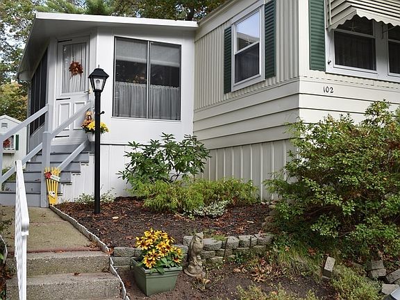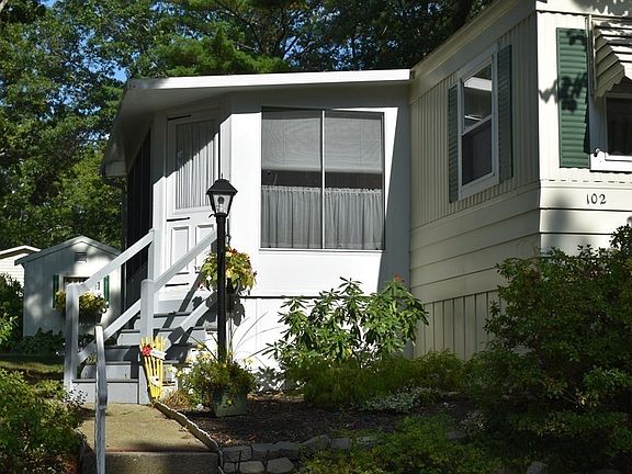 Over 55 and enjoy swimming, fishing, gardening, boating or just sitting on the porch enjoying morning coffee? This 2 bedroom single wide with bump out is perfect for you! The 2008 upgrades - kitchen, bathroom, flooring, windows, furnace, 3 season 10 x 15 enclosed porch (not included in living area) - have been meticulously maintained. Super cheery eat-in kitchen, comfortable spacious living room, master bedroom easily accommodates queen bed, a triple & a double dresser, ceiling fans in every room,. Porch has a front and rear door. Rear door leads to small outside patio for outdoor cooking, 2 car parking, lots of perennials in beautifully landscape yard, and shed. Great Hill Estates amenities include pool and club house available for owners use. Just 5 minutes to Wareham Crossing, 15 minutes to ocean beaches and Cape Cod bridges. $527 park fees cover all taxes, water/sewer, rubbish/snow removal and maintenance of common area