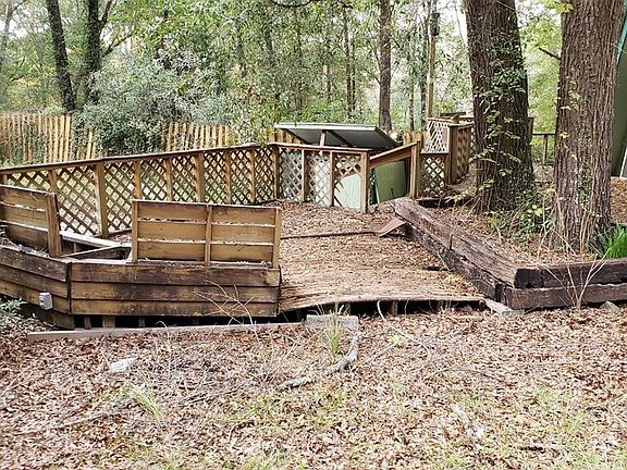 Beautiful Pool area and secluded yard. Freshly painted. Vacant and easy to show. Needs work - rotten wood, deck needs replacing, pool needs new liner, possible water intrusion in the house. A handy man or woman could turn this into a wonderful place as it is very secluded and under a canopy of very large oak trees.