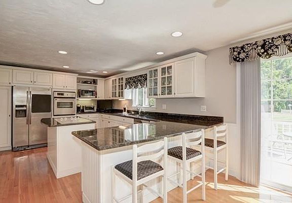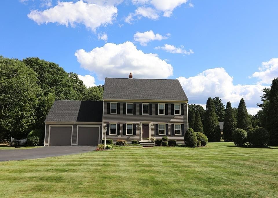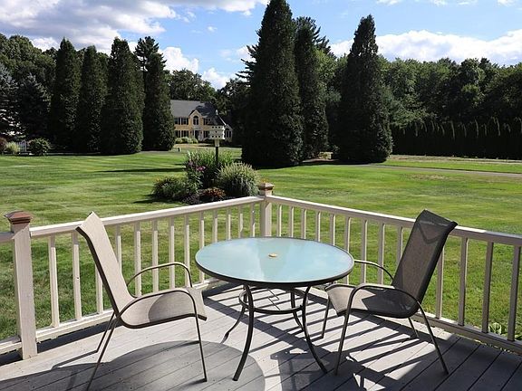 New Offering! An Estate like setting with Beautiful Grounds invites you into this Sunny 8-9 room Colonial. 4 bedrooms and 2.5 baths. Granite kitchen with breakfast bar, an island and sliders looking out onto the deck. Step into the Living room with gas fireplace open to the Dining room with a walk in bay window. First floor laundry & mud room, a half bath, and a Den or Office. The Master bedroom suite offers a dressing room with the bath; double vanities and closets. 3rd floor bedroom & a Bonus room! Freshly Painted inside and a New Roof! Step out onto the deck in this Wonderful setting! 1.5 acres of level, open grass perfect for garden parties, soccer, and volleyball!