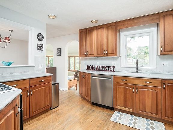 Stunning open-concept, lovingly maintained & updated 3BR, 2 bath multi-level house in North Framingham is the home you have been waiting for! It flows beautifully w/ finished family spaces on multiple levels perfect for entertaining. Big picture windows allow abundant natural light through the day. Highlights include a beautifully updated natural cherry kitchen w/ Corian counter tops & ALL NEW appliances, inviting entryway w/ cedar coat closet, a bright 4-season sun room that leads to patio & a large tree-lined private yard. Updates include new hot water heater, front load W/D, roof and chimney, reset patio & updated central A/C. Freshly painted, with hardwood floors throughout and California closets in all bedrooms. Low maintenance replacement windows and vinyl siding exterior. Over-sized garage has direct entry into house. Professionally landscaped front yard will delight through the seasons. MULTIPLE OFFERS IN HAND - BEST OFFER PACKAGE DUE 5/17 BY 5PM PLEASE.
