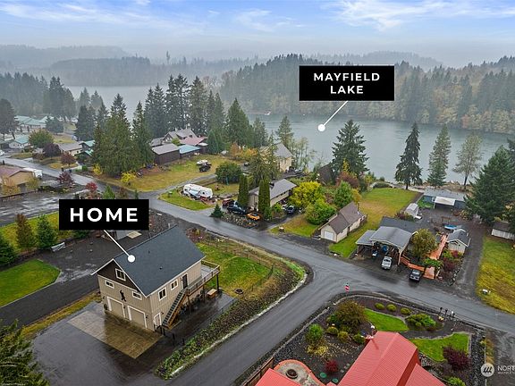 Buyers bring your boat, guests, pets there is something for everyone. Mayfield lake is minutes away, walking distance to marina, boat launching, swimming area and much more. This beautiful home has so much to offer 4 bedrooms 3 bathrooms. Vaulted ceilings, wood stove, wood flooring, open floor plan, two bedrooms on the main floor, primary on the upper floor, fourth bedroom off the garage. Fenced yard, RV parking, paved driveway, deck has awning, new decking, view of lake. Twenty-four foot boats fits in garage perfectly. The garage is huge plenty of rooms for toys. Home is easy to show. Sewer and water is $98.00/month. TDS/DSL is the internet service. No CCR's.