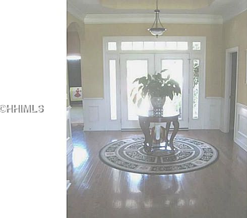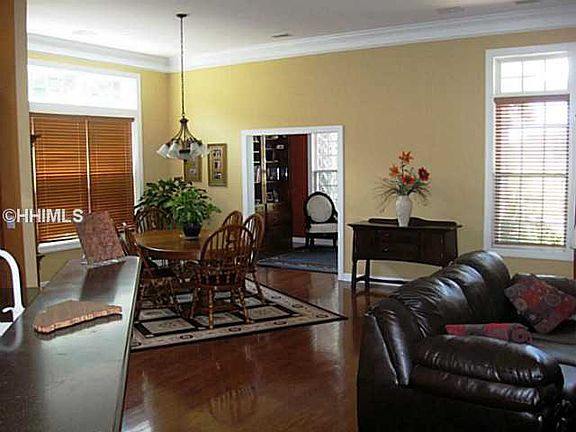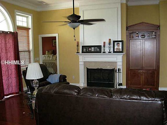 You must see this Cumberland model on the first hole of the Island West golf course and enjoy the golf view from the large covered porch. This home has a river rock water feature on the patio and has two arbors with hardware for a swing and a hammock. This builder's model has extensive landscaping and many built ins with beautiful wood crown moldings. The Kitchen has brand new stainless steel refrigerator, convection oven, dishwasher and microwave. (909112)
