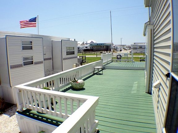 Looking for a weekend beach retreat or wanting to hear the surf every morning? Come and enjoy the coastal lifestyle in the family friendly Boardwalk RV Park, an oceanfront, gated community in Emerald Isle, NC. This 2010 Canterbury Park Model RV has it all! Enjoy the magnificent sunsets while you grill out and entertain friends on the oversized 350sf multi level deck. This unit comfortably sleeps 8 people. The master bedroom is downstairs and has lots of storage including pier units on the wall complete with built in drawers, over the bed storage units and matching night stands. Flat panel TV in the bedroom is included. Upstairs, there is a double loft with full privacy wall that can easily fit a full bed or queen bed on each side. Matching small closets and night stands on both sides of the loft. Other highlights of this unit include:1. Front load, energy efficient washer and dryer2. 2.5 ton residential heat/ac unit3. 10,000 BTU window air conditioning unit in upstairs loft4. Larger, residential style bathroom is roomier than most park model RV's5. Full size residential gas stove, side by side refrigerator and microwave6. All carpets have been professionally cleaned7. Storage available under camper in dry area perfect for storing beach chairs, umbrellas, tents and other beach necessities.8. Surround sound installed inside the camper in both living and bedroom; trailer is wired to accommodate 4 outside speakers on the exterior.9. Large grassy area with cement walkway in front of the RV is ideal for children to play or to set out an extra grill.10. Enjoy the picnic table on the grass outside the unit that is perfect when you need additional seating for family or friends.A video slideshow of this beach home can be viewed at: httpyoutu.be/tx2NqzMI3QAAnnual lot lease of $3900 will be prorated at closing. Lot lease includes basic cable, maintenance of the common areas and trash. Wind / Hail / Insurance cost approximately $500/yr. Flood insurance is not required. There are NO real estate property taxes as RV's are considered to be personal property and NOT real property in the state of NC.No owner financing or rent to own. This is a cash only deal.